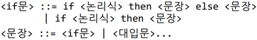 - 동일한 표현에 대해 서로 다른 파스 트리가 만들어지는 문법