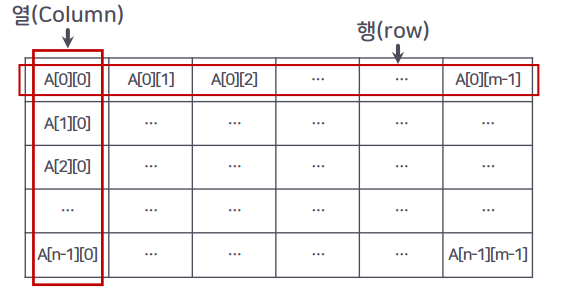 - 가로의 1차원 배열 단위로 메모리 영역을 우선 할당함