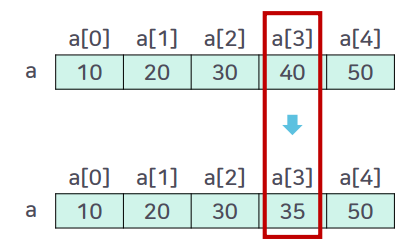 ▪️ a[3]의 값이 35로 변경되어 저장된 모습