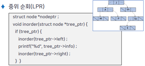 - 왼쪽 자식노드(L) - 루트노드(P) - 오른쪽 자식노드(R)