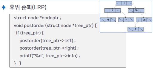 - 왼쪽 자식노드(L) - 오른쪽 자식노드(R) - 루트노드(P)