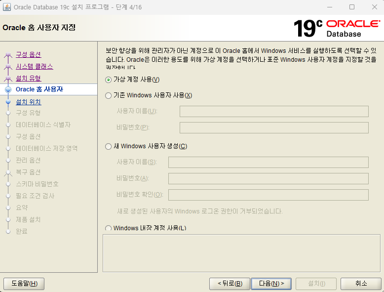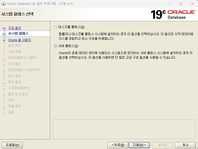 - 데스크톱 클래스(D): 데이터베이스를 혼자 사용하는 경우 선택