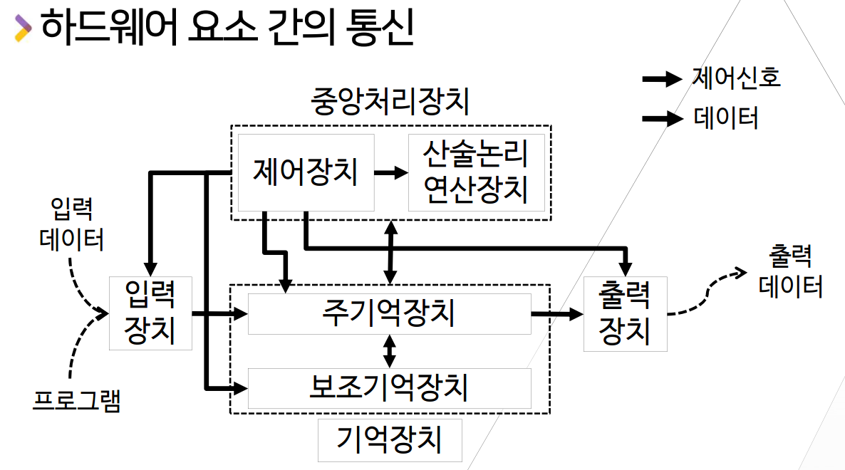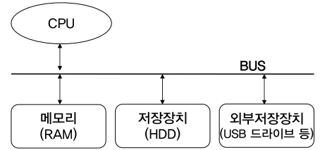 - CPU와 메모리, 저장장치 등이 BUS로 연결
