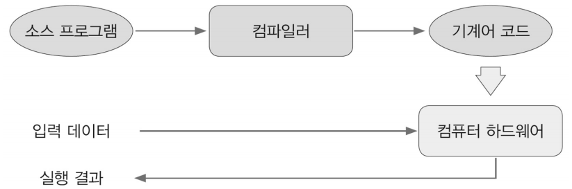 - 인터프리터가 하는 해석 과정을 미리 모두 수행(수행 입장에선 효율적)