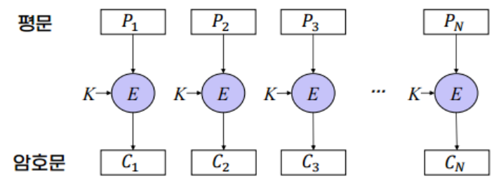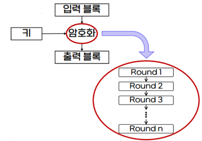 블록 암호 평문을 고정된 크기의 블록으로 나누어 각 블록마다 암호화 과정을 수행하여 블록 단위로 암호문을 얻는 대칭키 암호 방식 |