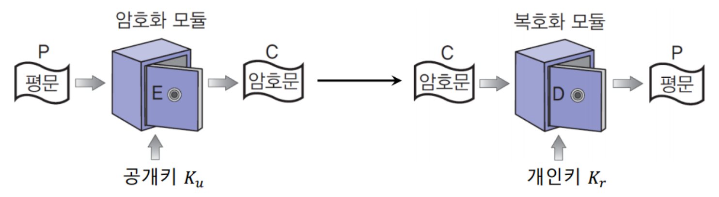 - 암호화와 복호화에 두 개의 서로 다른 키를 사용하는 암호방식