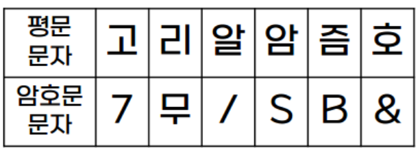 - 평문의 문자들을 다른 문자로 치환함으로써 암호화하는 기법