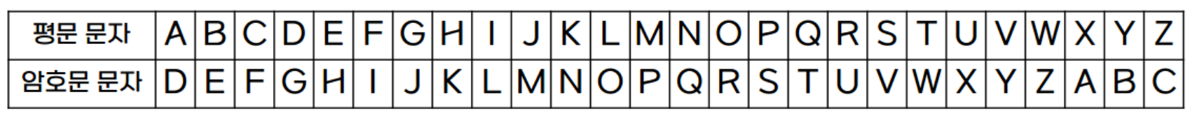 시저 암호 평문의 각 문자를 알파벳 순서상 세 문자 뒤에 위치하는 문자로 치환