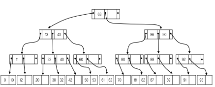 만약 키값이 60, 62이면 첫번째 자식 노드의 값은 60보다 작아야 하고, 두번째 자식 노드는 60과 62 사이의 값이어야 하고, 세번째 자식 노드는 62보다 큰 값이어야 함