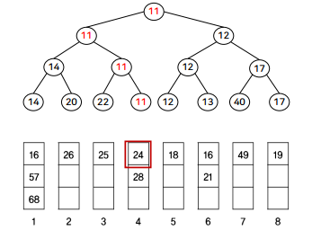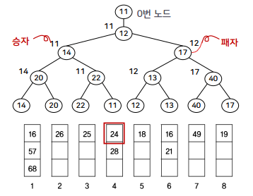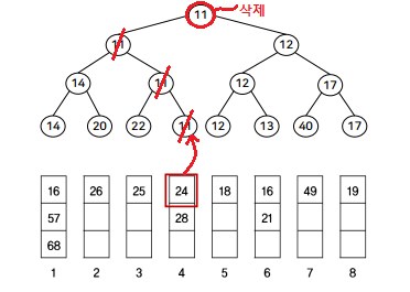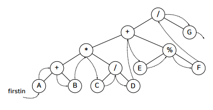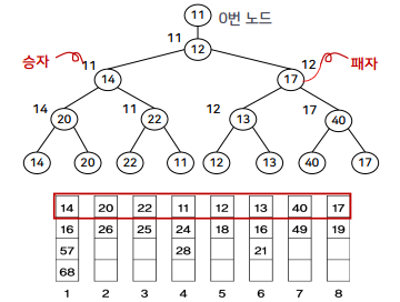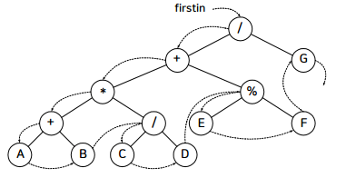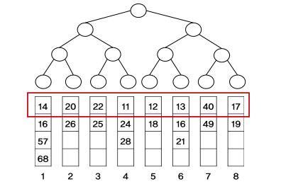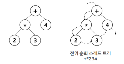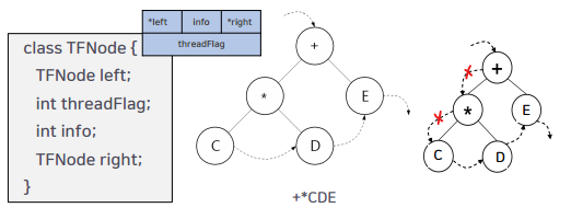 잎노드를 연결하는 포인터를 가짐. 왼쪽 잎노드가 가장 작은 값이고 오른쪽 잎노드가 가장 큰 값