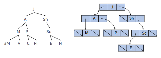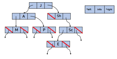 잎노드는 키값으로만 표기하고 내부노드 중 자식이 없는 포인터들은 표시하지 않음!