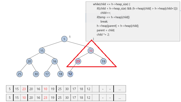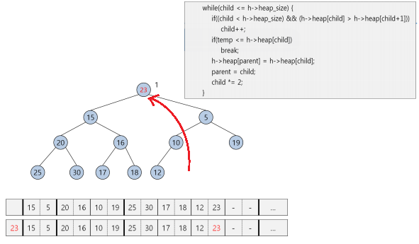 매번 왼쪽인지 오른쪽인지 비교해가면서 다음 노드를 찾아가면서 처리해야 함