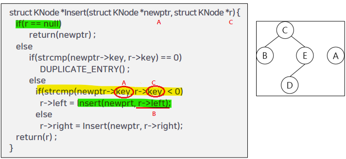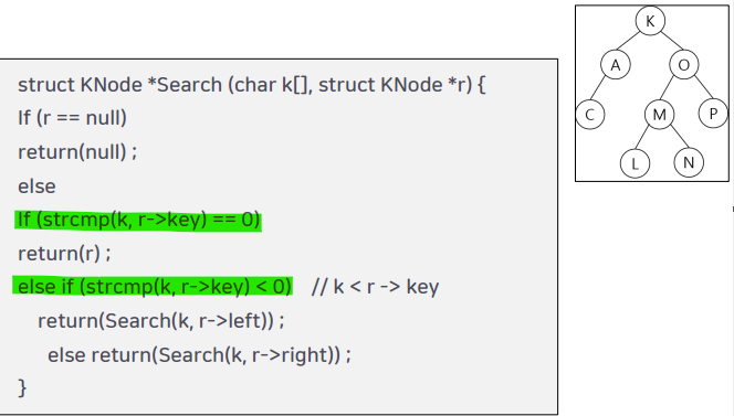 키 값들과 서브트리들의 값의 관계 확인 (어떤 것은 작고, 어떤 것은 크고, 어떤 것은 사잇값인지를 확인)