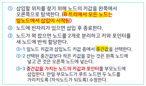 🔸B 트리에 키를 삽입하는 알고리즘