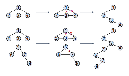 트리의 루트는 최소한 2개의 서브트리를 갖는다