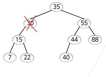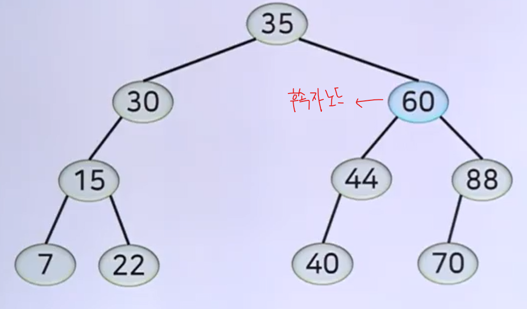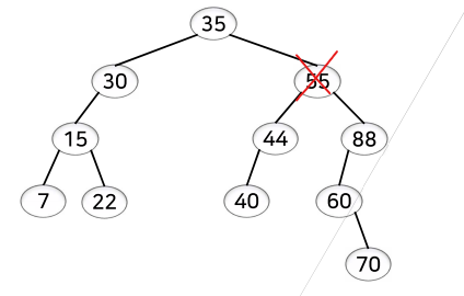 40을 삭제하면 중간값을 오른쪽 서브트리의 가장 앞에 있는 값을 올려줌