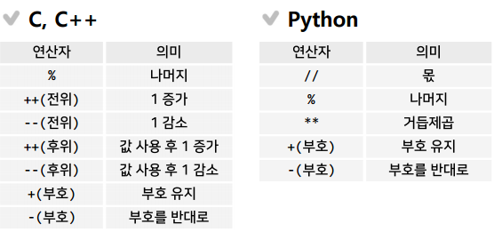 나머지 연산: mod, % (예: 7 mod 3 = 1)
