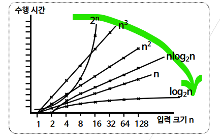 예) 퀵 정렬, 합병 정렬, 이진 탐색
